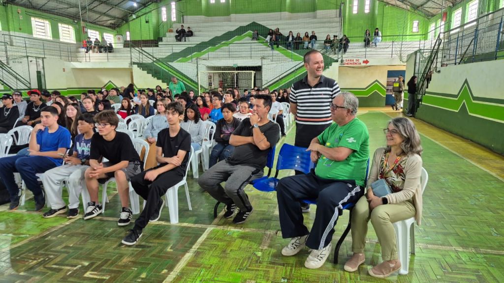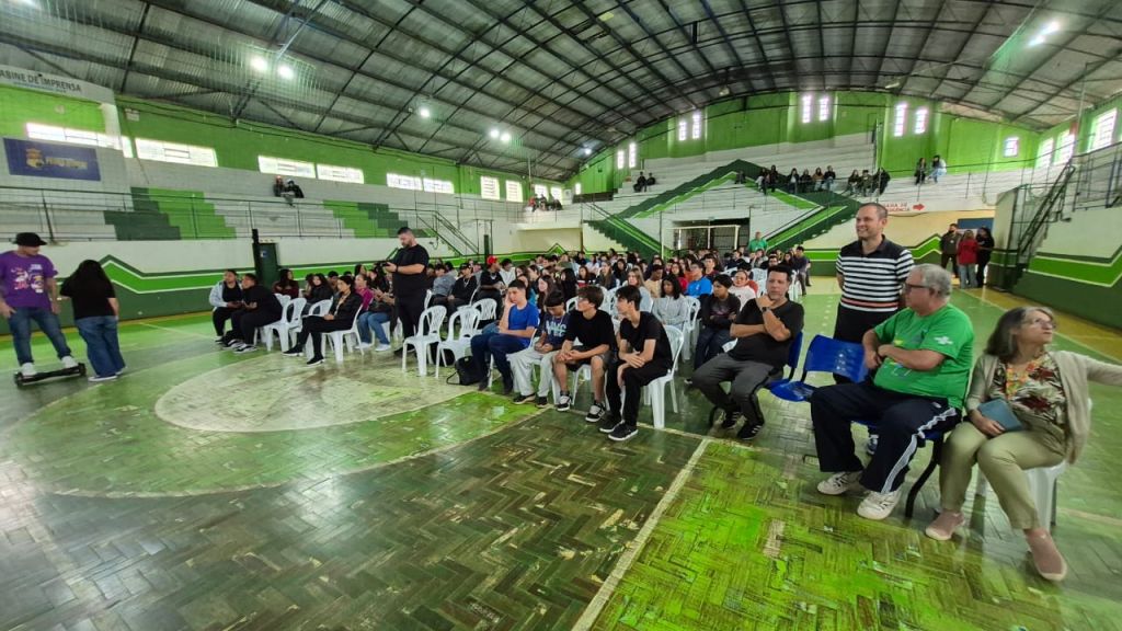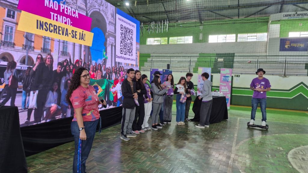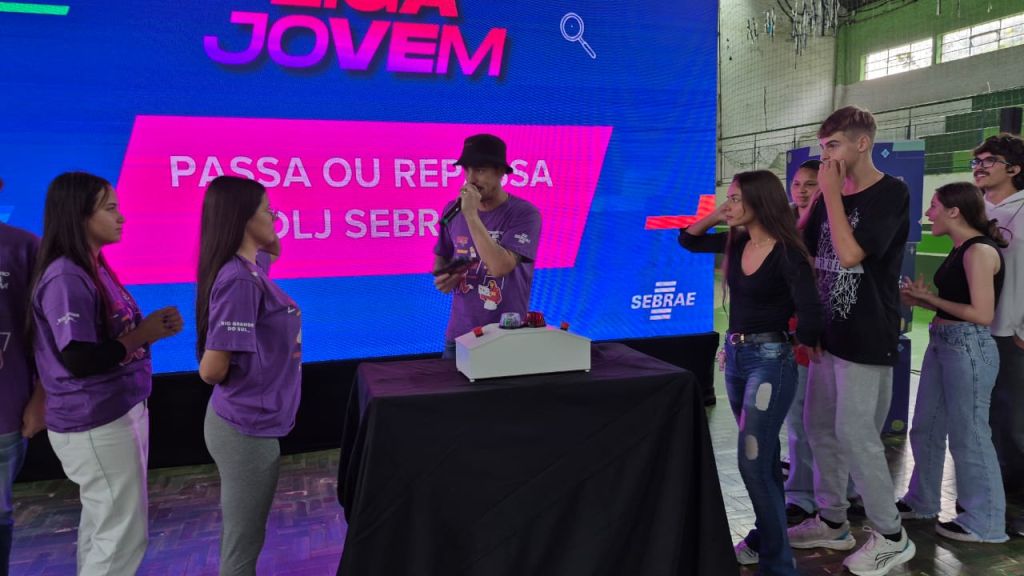 O SEBRAE trouxe uma grande estrutura para apresentar aos alunos a 4ª Edição do Desafio Liga Jovem, que tem como objetivo preparar jovens para serem protagonistas na criação de soluções transformadoras, desenvolvendo competências para a vida pessoal, acadêmica e profissional, por meio de trilha de aprendizado, vivências inspiradoras e premiações.